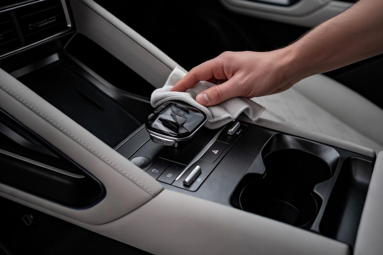 Lau sơ bảng taplo và vô lăng bằng khăn ẩm sạch.